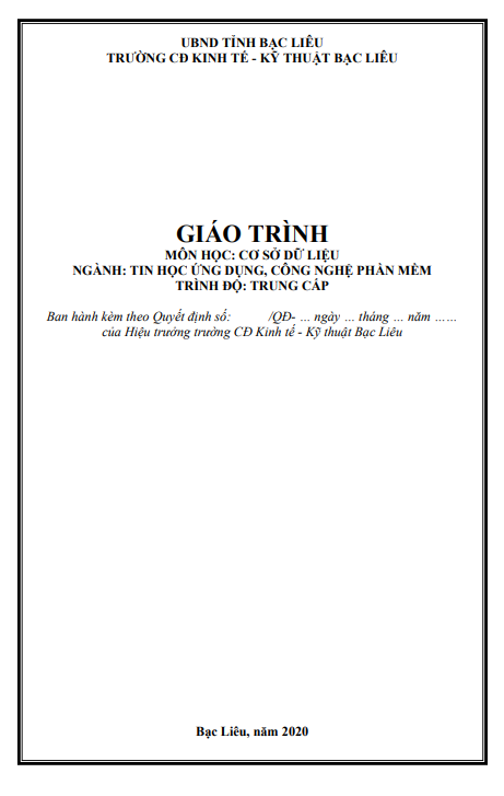 TRƯỜNG CAO ĐẲNG KINH TẾ - KỸ THUẬT BẠC LIÊU